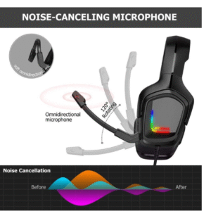 ONIKUMA K20 Wired Gaming Headset – PC, PS4, Xbox, Laptop, Mobile – LED RGB