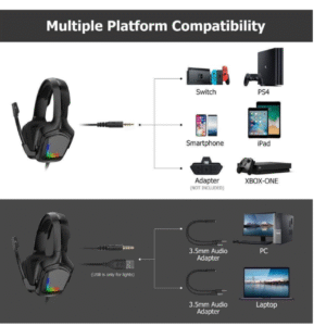 ONIKUMA K20 Wired Gaming Headset – PC, PS4, Xbox, Laptop, Mobile – LED RGB